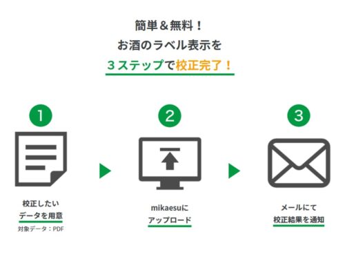 そこで、2024年春にウェブサイト上でご利用頂ける日本酒ラベル用の無料AI校正システム「mikaesu」を開発。同年秋には、新たに焼酎とワインのラベル表示に対応。