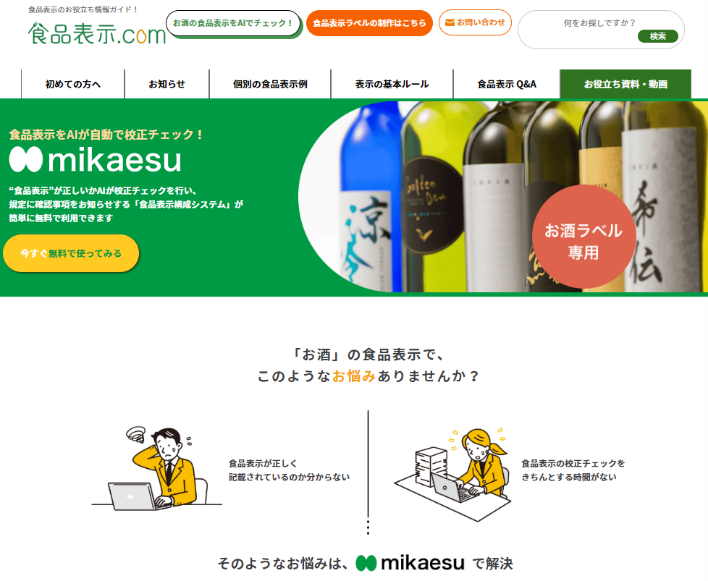 当社が運営する食品表示ポータルサイト「食品表示.com」にて提供している、お酒ラベル表示校正システム「mikaesu (ミカエス)」について、追加開発が完了し、アップデートを公開いたしました。